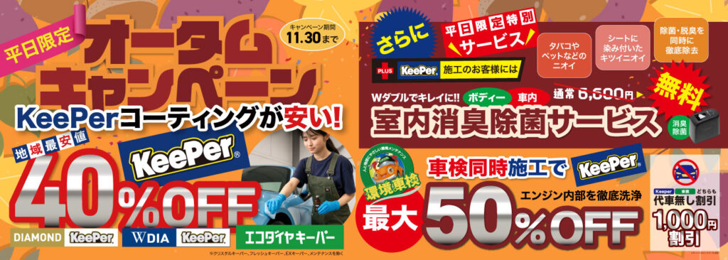 【最大50%OFF!】keeperコーティング オータムキャンペーン実施中!